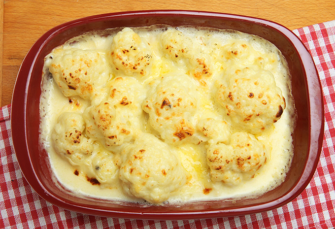 Cozinhe os ramos da couve-flor com água e sal, em panela tampada, por 10 minutos, ou até que fiquem cozidos, mas não moles. Escorra e reserve-os. Numa panela, coloque a margarina e doure a cebola. Acrescente a maisena dissolvida no leite, misture bem, sem parar de mexer, até engrossar; retire do fogo. Arrume os ramos de couve-flor num refratário e despeje o molho por cima. Polvilhe com o queijo. Na hora de servir leve ao forno para garantir por 10 minutos. Sirva bem quente.