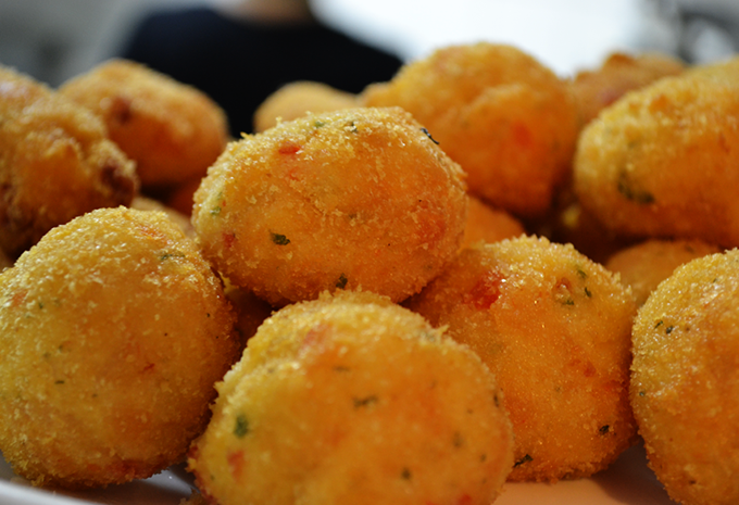 Misture a Farinha de Trigo com a carne e a cebola. Tempere com sal e pimenta e coloque a seguir em uma panela e refogue, com a manteiga já derretida, até que a carne perca a cor de sangue. Não deixe dourar. Deixe esfriar, e faça os croquetes, fazendo bolinhas, depois pincele com as claras de ovo e passe na farinha de rosca para empanar. Coloque em uma forma e asse em forno moderado por 25 minutos.